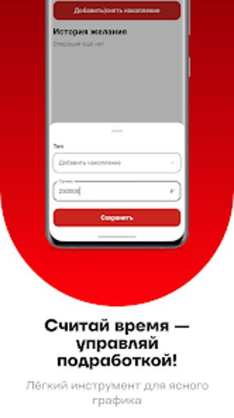 Подработка Сегодня är en gratis app för Android som hjälper användare att spara pengar mot specifika mål. Användare kan skapa 'önskemål' som sträcker sig från elektroniska apparater till större inköp, och ange ett belopp i rubel. Appen visar tydligt hur mycket som har sparats och hur mycket som återstår till det uppsatta målet genom en progressionsbar. Med detta visuella verktyg kan användare enkelt följa sina framsteg och hålla sig motiverade.